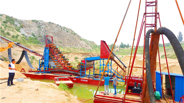 晉特富環保科技生產的鉆探式抽砂選鐵船,適用范圍廣,維修費用低,是針對厚泥層抽沙選鐵的設備。1,產品結構:本設備有附體,主架,鉆桿,抽沙泵,高壓打水泵,控制箱,卷揚機,發電機組,磁選機,平板磁選機,發沖箱,尾礦輸送設備等組成。2,抽沙系統:抽沙泵8吋-16吋,打水泵6吋-14吋,動力配電機或柴油機,抽沙鉆桿,用鋼板工鋼焊接,強度大,鉆探深度3-100米,3,選礦設備:JTF-磁1530磁選機1-3臺,JTF-pb3040平板磁選一套,4,尾礦輸送設備:輸送帶,抽沙泵,二次挖斗,水洗輪,螺旋輸送機,溜槽,任選其一。