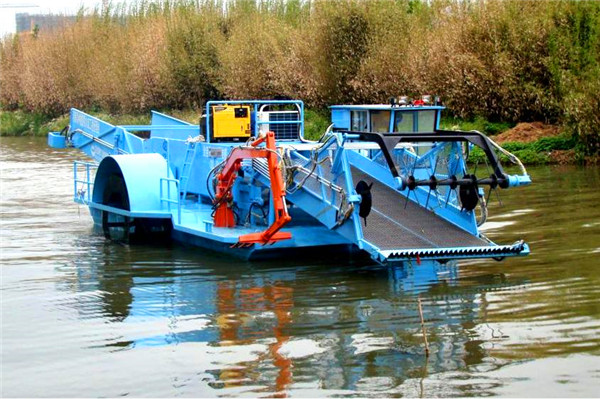割草船是一種集割草、聚攏、打撈、濾水、輸送、卸載等于一體的現代化水草、水葫蘆收割設備。所有操作程序采用全液壓控制,簡單、方便、靈活,是城市水面景區不可或缺的保潔設備,也可作為垃圾清理船、湖面保潔船均收到良好的效果。
